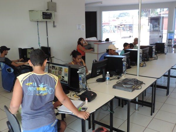 E para os alunos que precisam fazer trabalhos escolares já encontra tudo em um mesmo local os computadores e livros disponíveis da Biblioteca para suas pesquisas com mesas e cadeiras.