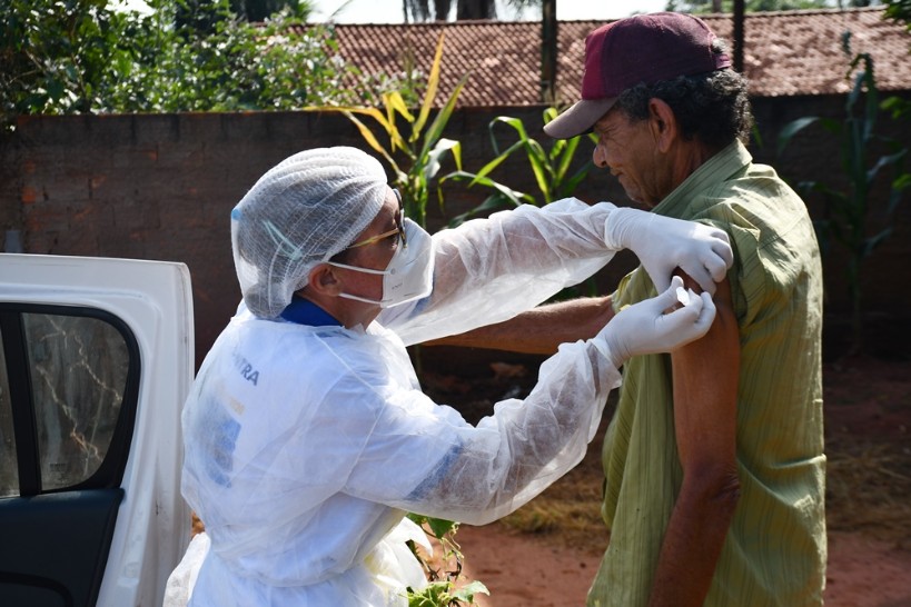 As aplicações estão sendo realizadas por profissionais de saúde em domicílio, não necessitando que o idoso ou idosa, precise se deslocar até uma Unidade de Estratégia Saúde da Família (ESF).